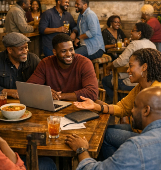 When people relax over jollof, plantain, and old school tunes, walls come down. Conversations flow. Friendships form without the pressure.